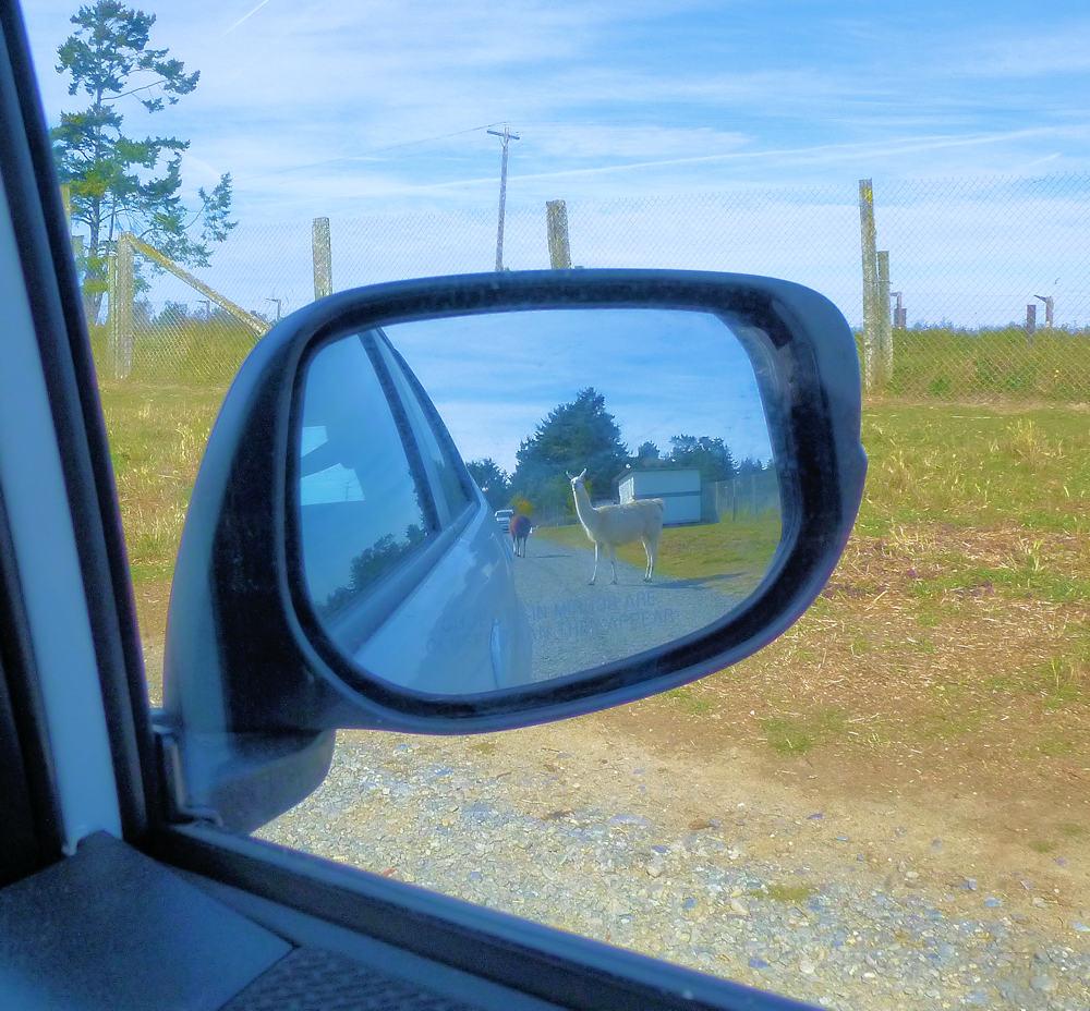 We had a lama try to slow us down by sticking his head in front of our car. It did not work because he had to come back to the window to get food and we then drove off. The bears were great and put on a good show catching bread thrown at them.