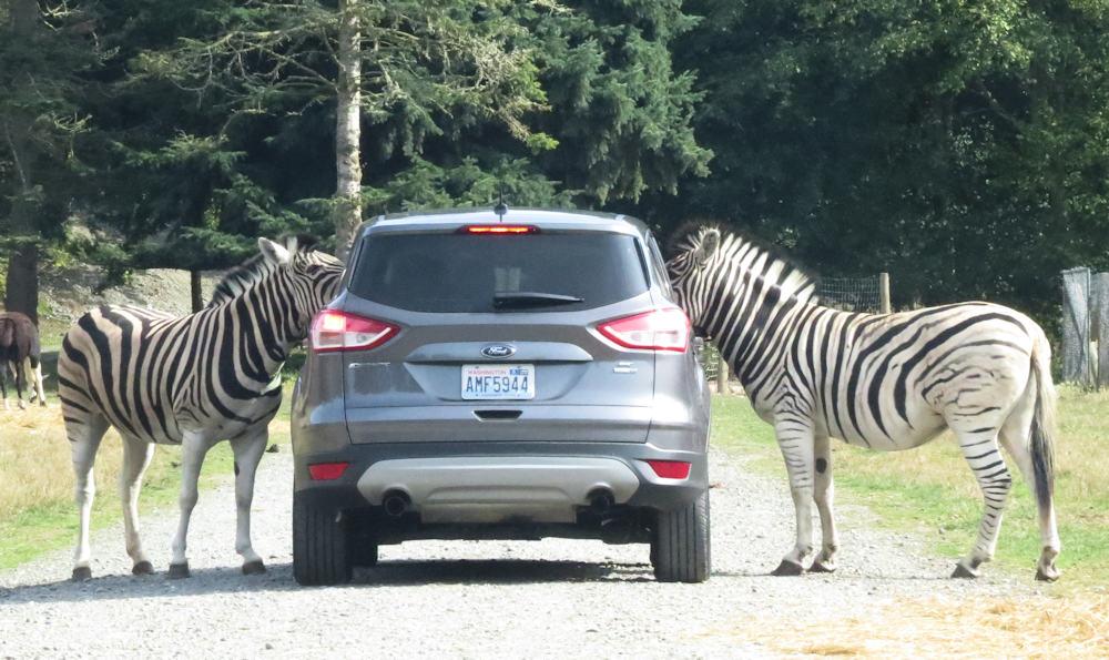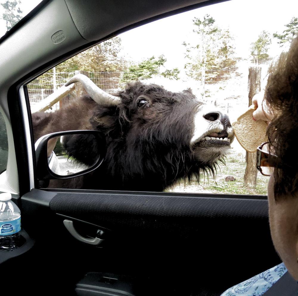Because you are allowed to feed them, they come up to your car. Some even get pushy about it. You can get pictures here that you can never get anywhere else. You do need to be cautious as the animals are not hesitant to come right up to your car for a slice of bread!