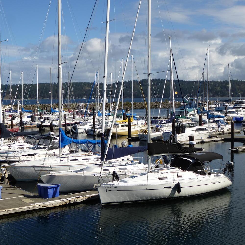 John Wayne Marina was constructed in 1985 on 22 acres of land donated by the John Wayne who frequented Sequim Bay waters aboard this yacht the Wild Goose.